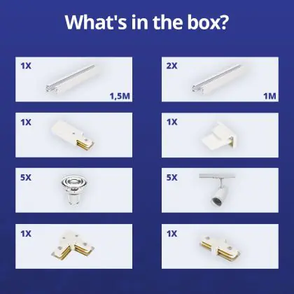 Descrizione Bright Choice Set completo 1-Fase Rail L 1,5 x 2 Metro Bianca | incl. 5x Faretti + GU10 2700K 3W Dimmerabile + Tappo Di Chiusura, Connettore di Alimentazione e L -Connettore