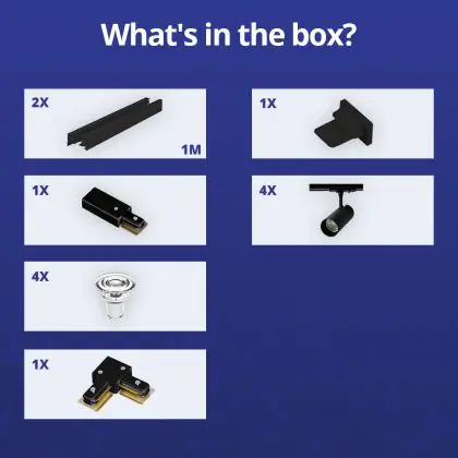 Descrizione Bright Choice Set completo 1-Fase Rail L 1 x 1 Metro Nero | incl. 4x Faretti + GU10 2700K 3W Dimmerabile + Tappo Di Chiusura, Connettore di Alimentazione e L -Connettore