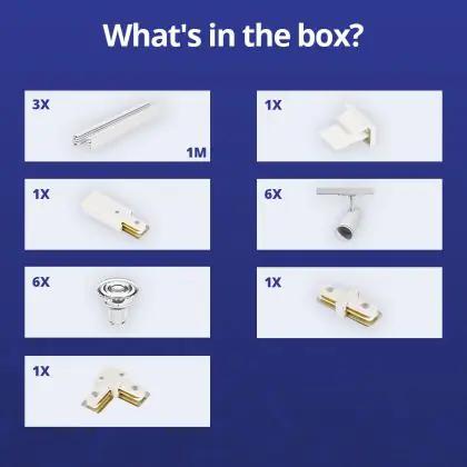 Descrizione Bright Choice Set completo 1-Fase Rail L 1 x 2 Metro Bianca | incl. 6x Faretti + GU10 2700K 3W Dimmerabile + Tappo Di Chiusura, Connettore di Alimentazione e L -Connettore