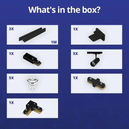 Descrizione Bright Choice Set completo 1-Fase Rail L 1 x 2 Metro Nero | incl. 5x Faretti + GU10 2700K 3W Dimmerabile + Tappo Di Chiusura, Connettore di Alimentazione e L -Connettore