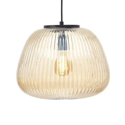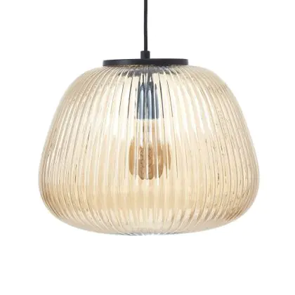 Brilliant Kaizen Luce Pendente Vetro Luce Pendente Metallo Nero Beige | 350mm - Adatto per 1x E27