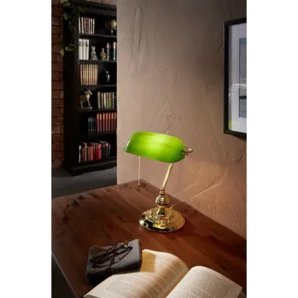 Eglo Lampada Da Tavolo Banker Acciaio Oro Verde | IP20 - Adatto per 1x E27