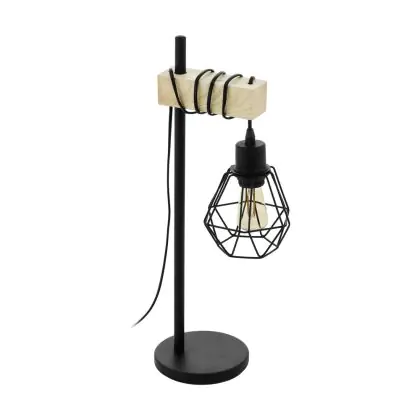 Eglo Lampada Da Tavolo Townshend 5 Acciaio Legna Nero | IP20 - Adatto per 1x E27