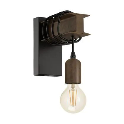 Eglo Luce Da Parete Townshend 4 Acciaio Nero Marrone | IP20 - Adatto per 1x E27