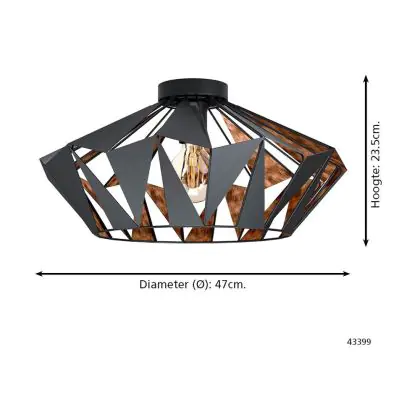 Eglo Luce da soffitto Carlton 6 Acciaio Nero Rame | IP20 - Adatto per 1x E27