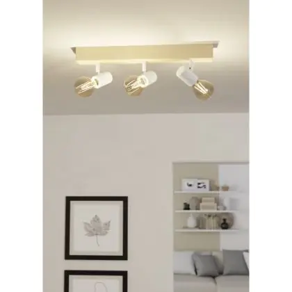 Eglo Luce da soffitto Townshend 3 Legna Acciaio Bianca | IP20 - Adatto per 3x E27