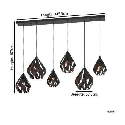 Eglo Luce Pendente Carlton 1 Acciaio Nero Rame | IP20 - Adatto per 6x E27
