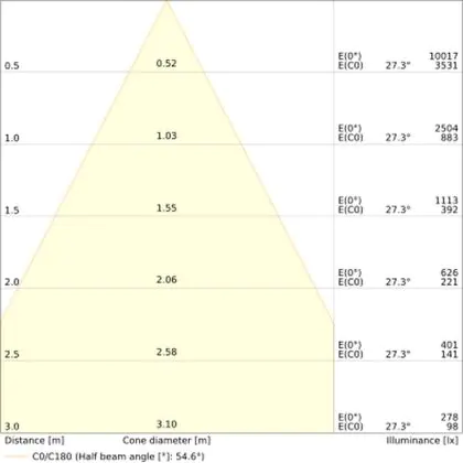 ![]() Il codice colore è una combinazione di resa cromatica (CRI) e colore della luce (Kelvin). La prima cifra indica la resa cromatica (1 = resa del colore molto bassa, 9 = massima resa del colore), mentre la seconda e la terza si riferiscono al colore della luce. Esempio: il codice colore 830 indica una buona resa cromatica (8) e luce bianca calda (3000K). |