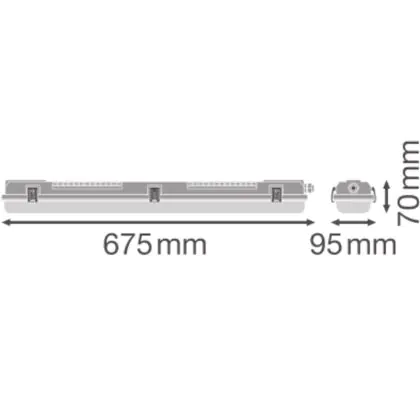 Questa reglette  ha una lunghezza di 675mm e tecnologia Apparecchio senza lampadina. Inoltre ha una durata di circa  ore un wattaggio di solo  Watt. Questo apparecchio di illuminazione durerà quindi molto a lungo, consumando poca energia.