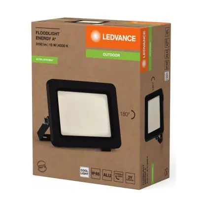 Descrizione Ledvance Proiettore LED Aluminium Nero 15W 2600lm 95D - 840 Bianco Freddo | IP65 - Simmetrico