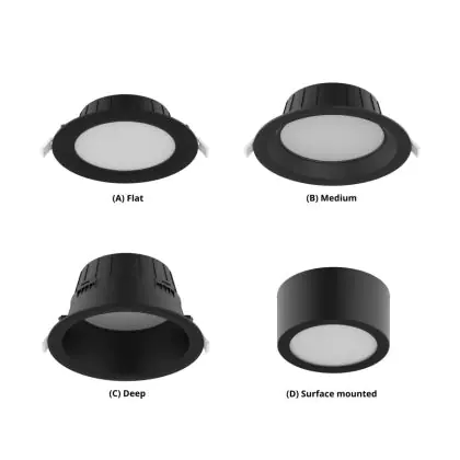 Descrizione Noxion Downlight LED Hera Profondo Incasso Nero 9W 900lm 80D - 827-830-840 CCT | 146mm - Ritaglio 120mm
