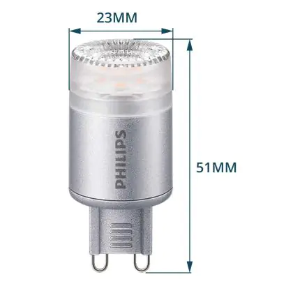 Questa lampadina sostituisce le lampadine G9 da 25W con un consumo di soli 2.3W. Assicura pertanto un risparmio sui consumi del 91%.