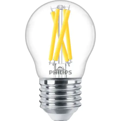 La Philips MASTER LED E27 Sferica Filamento Chiara 3.5W 470lm - 922-927 Dim To Warm | Miglior Resa Cromatica - Dimmerabile - Sostitutiva 40W è la perfetta sostituzione per la tua lampada convenzionale 40W con attacco E27 grazie alla sua tecnologia LED. Passare a LED ti offrirà tanti vantaggi!