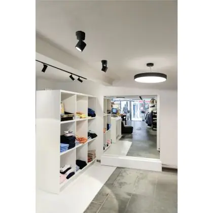 Un apparecchio con design inclinabile consente di dirigere l'illuminazione in modo specifico su un oggetto o una superficie. Ciò può rivestire un ruolo particolarmente importante nei negozi (mettendo in risalto una nuova collezione) o nelle gallerie (accentuando le opere d'arte). Può anche influenzare il comportamento di acquisto o l'interpretazione dei visitatori.